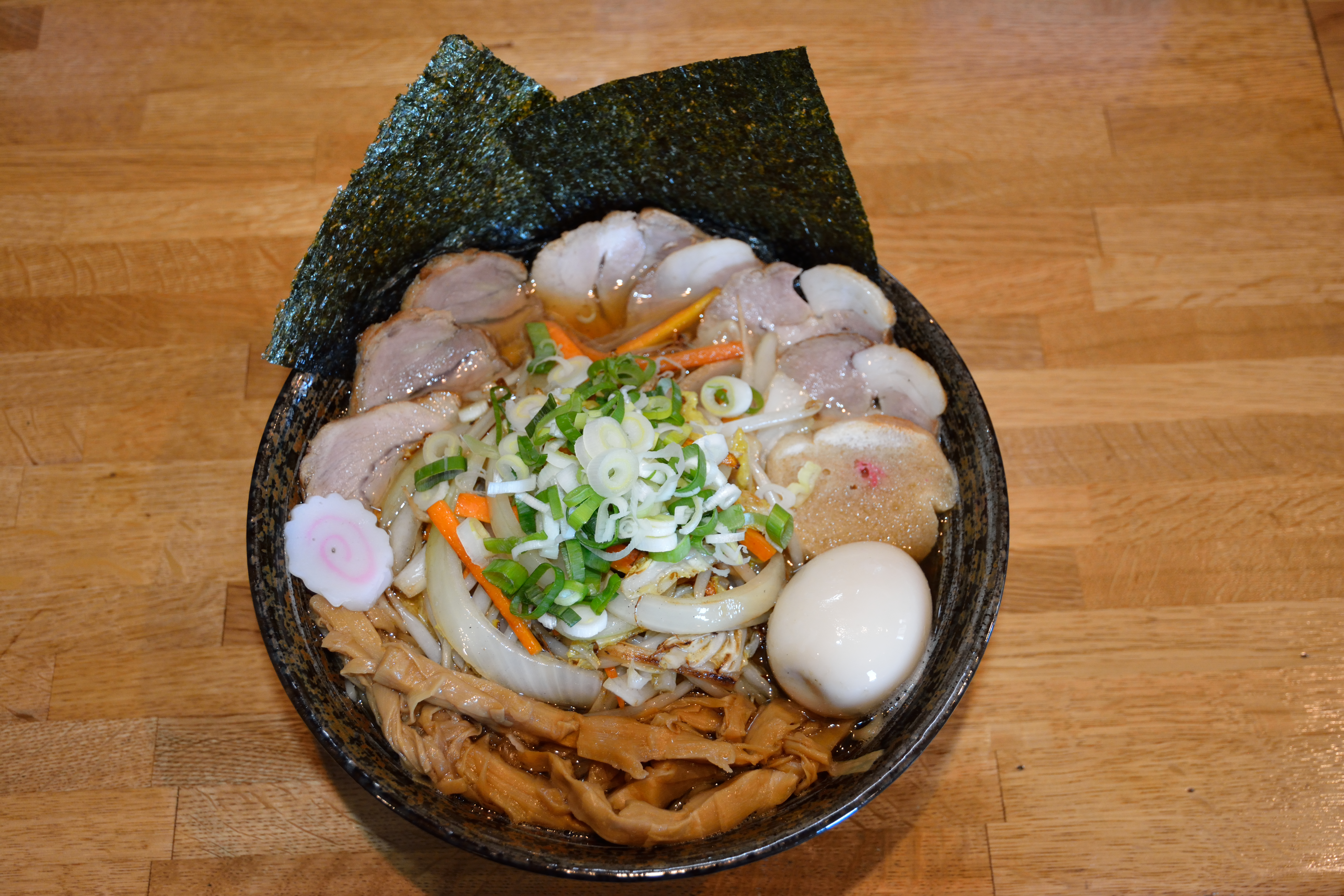 トッピング・ライス 肩ロースチャーシュー4枚 400円 ・モモチャーシュー4枚 400円 ・野菜 200円 ・ メンマ 200円 味付半熟玉子 150円 ・ 海苔 100円 ・ 麺の大盛 100円(麺の大盛の大盛 150円) 麺-70g -50円 ・小ライス 100円 ・ 中ライス 150円 ・ 大ライス 200円 ※商品の写真内のナルトは現在提供しておりません。 肩ロースチャーシューは状況により提供出来ない時があります